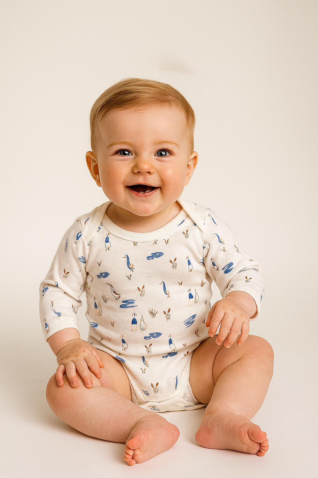 Бодито Love my Ducking в бежово е меко и практично предложение за вашето момченце. Изработено от 100% памук, то осигурява нежност към кожата и удобство през целия ден. Забавните патета върху плата добавят игрив акцент и носят усмивки както у детето, така и у родителите.