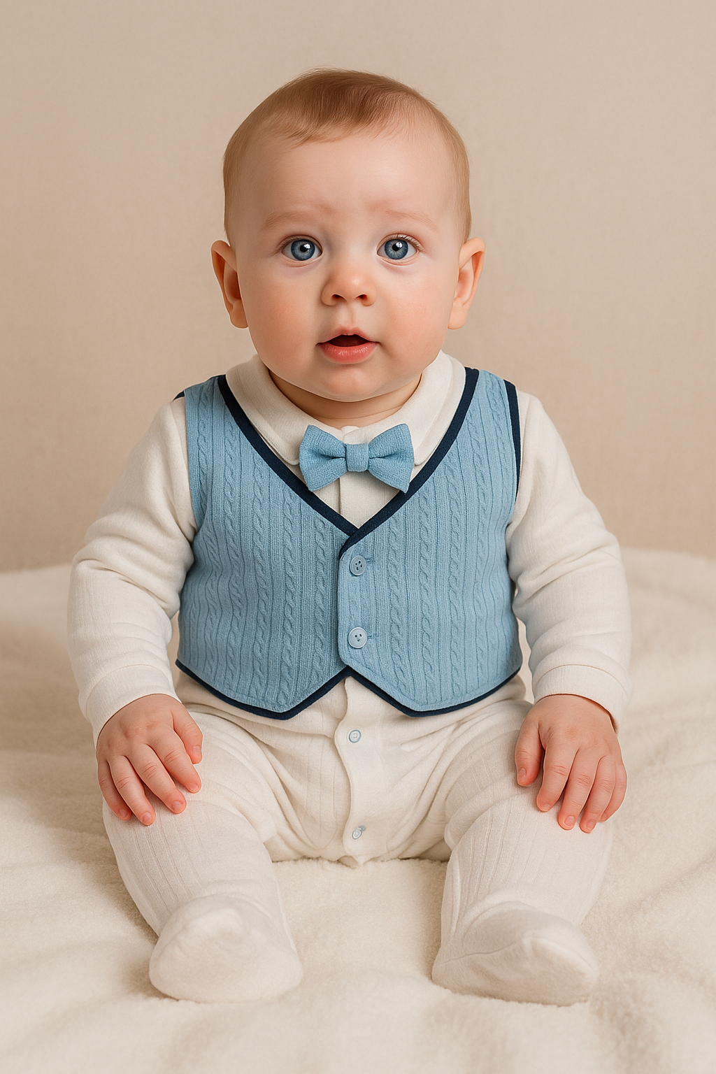 Комплектът „Джентълмен“ е създаден за специалните моменти, когато искате вашето момченце да изглежда стилно и изискано. Меката памучна материя осигурява удобство и свобода на движенията, докато елегантните детайли придават празничен и чаровен вид. Идеален избор за семейни тържества, фотосесии или подарък, който носи радост и усмивки.